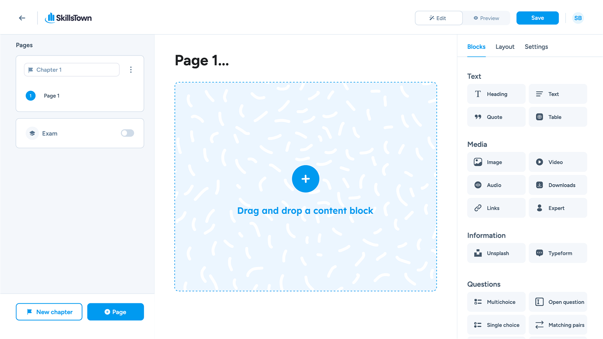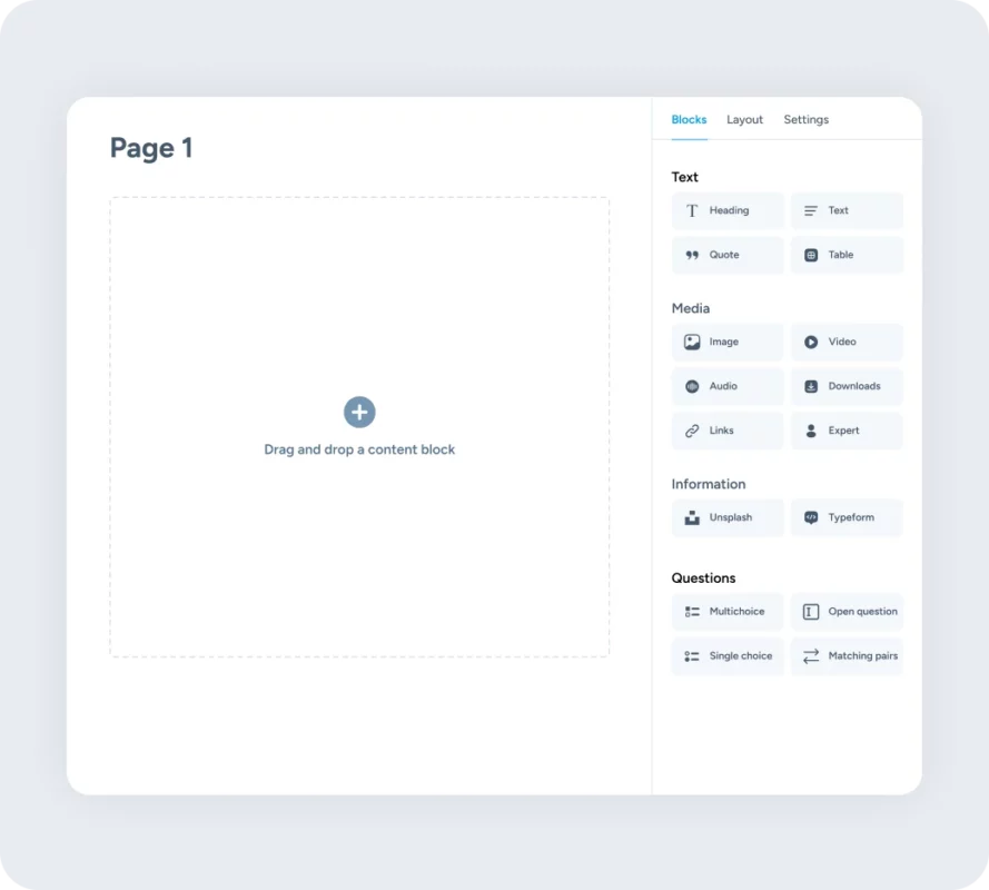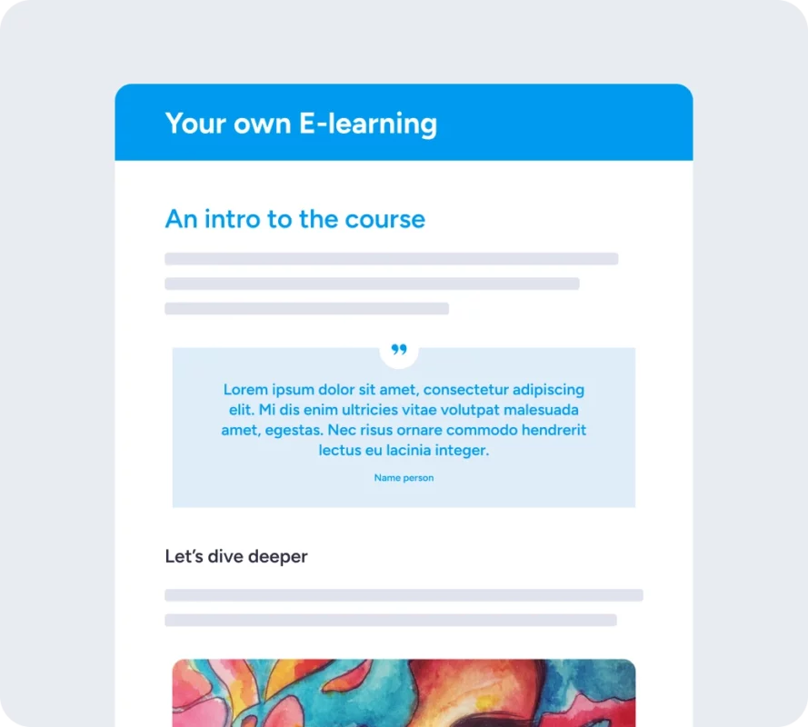 Sleep eenvoudig tekst, afbeeldingen, video’s en interactieve elementen in je training.